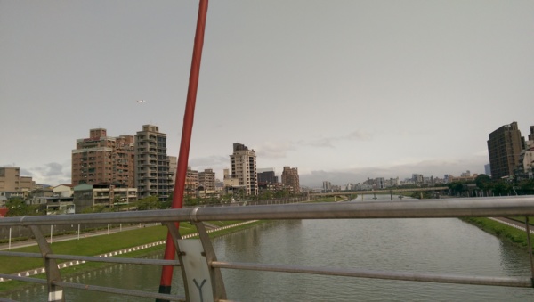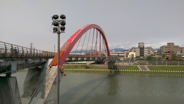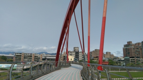 彩虹橋 跨越基隆河 有優雅的S造型,紅色的鋼肋拱形樑白天看起來很鮮艷搶眼