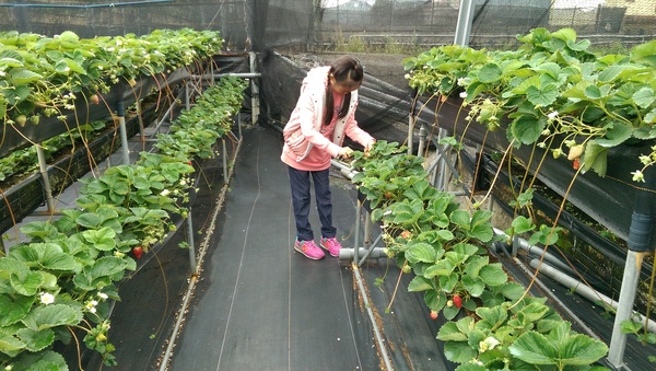 這回他家今年第一波草莓已採完,我們改到旁邊他堂妹的草莓園。