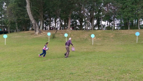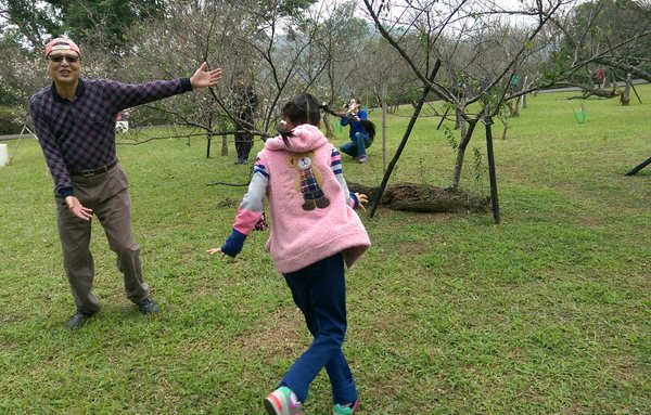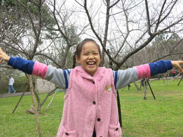 沒看過梅花的小女孩看到梅樹刺刺的,有些卻步。