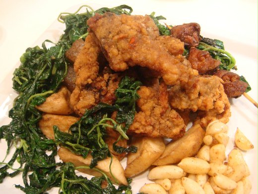 鹽酥雞 胡椒鹽 再加上九層塔跟大蒜