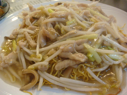 滿滿的豆芽跟肉絲 淋在煎的香脆的麵條上