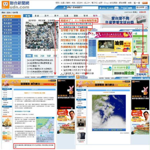 這不是心理測驗,有些產品就是希望颱風來時你會想起它的存在,例如本範例的主角:金頂電池,這次與UDN的獨家合作就是鎖定氣象局發佈颱風時,在UDN首頁會公佈颱風動態、路徑與防颱有關新聞,這時金頂電池預先製作的廣告就會出現,讓網友看見(如附圖)。