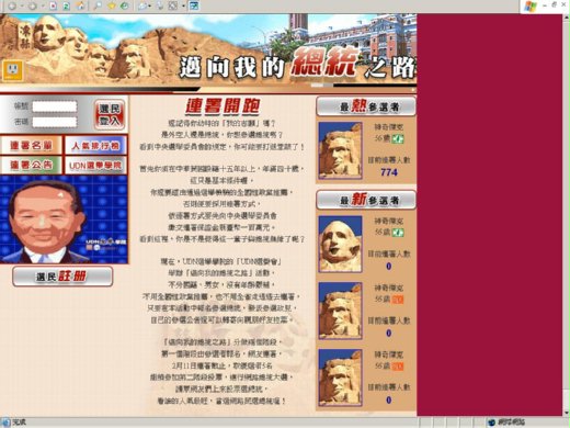 繼之前介紹過海報變裝秀與布狗言笑之後,今天介紹的是2004總統大選壓軸的網路行銷活動:邁向我的總統之路。