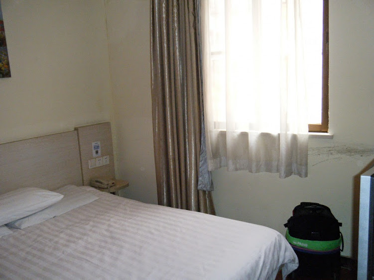廈門北站在廈門島外,BRT快1線自廈門北站到第一碼頭站,我們搭到蓮坂站,票價3元,行車約45分鐘,車上人不少,但中午離峰時間,已經比之前幾次搭乘好多了。之前說過廈門旅館貴,下圖房間大概4坪左右,一張大床,床舖靠窗走道窄,另一邊更靠牆,床前約80公分是桌子及電視,行李都不好擺,是住過最小間漢庭酒店的房間,這樣的房間賣219元,一樣是漢庭酒店,前兩天在潮州住的一房一廳套房只要149元。