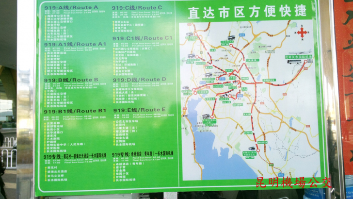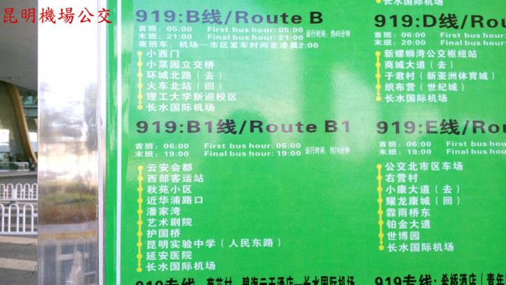 長水機場還有919路機場公交,如下圖,919後面加A,B,C,...,B又加了B1。