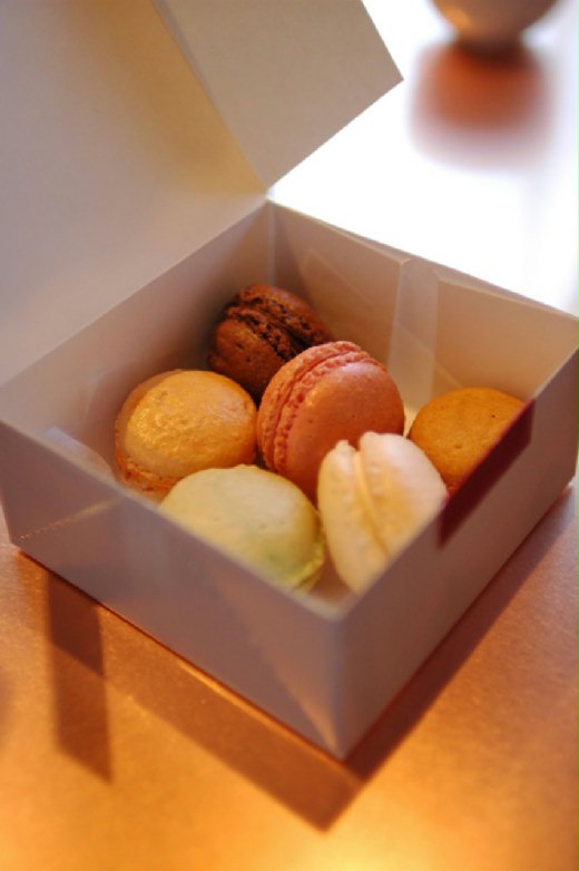 這次來其實還有個特定目標的.我想找macaron-法式奶油杏仁甜餅.不知道是哪裡搞錯,在溫哥華這個法文是第二語言的地方,竟然找不到Macaron這個東西.我問遍了所有溫哥華的法式點心店,因為這東西難做麻煩溫哥華又不流行,所以很少有店家在賣,真想吃,得到五星級大飯店去吃下午茶.心裡就很嘔,這種小餅乾怎麼可能在點心店裡買不到呢?所以在派克市場裡面看見法式點心店時,什麼也不想的就衝了進去.當看到小角落裡那像我招手之五顏六色的小餅乾時,真的有"孩子!終於找到你"之心情.我買了六個.七塊五美金.