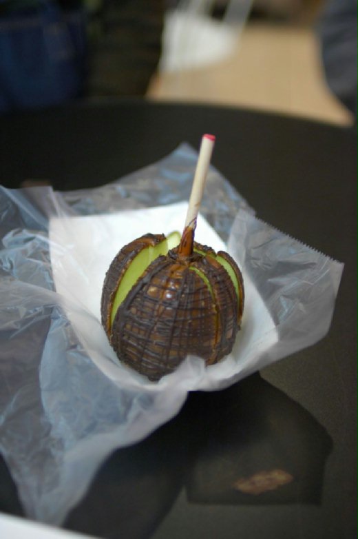 去完魚店,一定得去家糖果店吃糖蘋果.目前為止,他是我吃到過做得最好吃的糖蘋果囉.這次我點的是黑巧克力焦糖蘋果.這蘋果呢,一個人吃,太甜,馬上就膩.店家通常會問你,要不要切片呢?我最愛買個蘋果來大家分食.濃烈的黑巧克力,香純的焦糖,外加上爽口的蘋果.我覺得這家糖蘋果會好吃的原因是除了注重巧克力之外,他的蘋果挑選的品質一定是爽脆.最怕吃到那種外面甜裡面是沙沙的蘋果了.