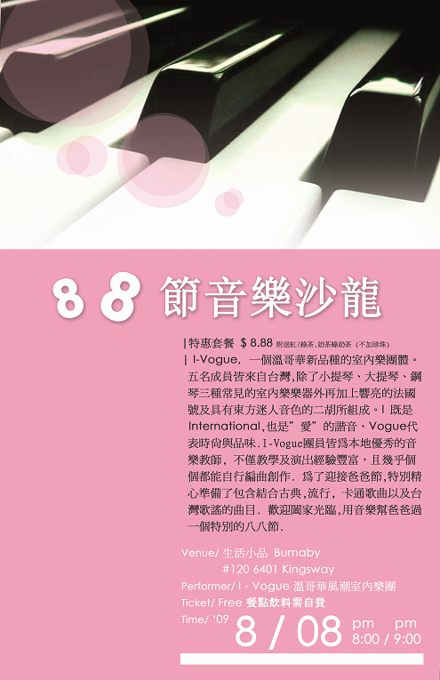 溫哥華風潮室內樂團 I-Vogue Chamber Music邀請溫哥華的你和妳來聽音樂啦!