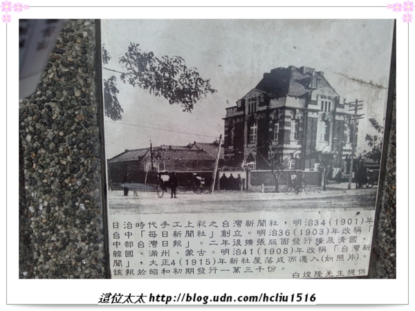1901年台中每日新聞社創立,1908年改為台灣新聞社,1915年遷入照片中新屋。