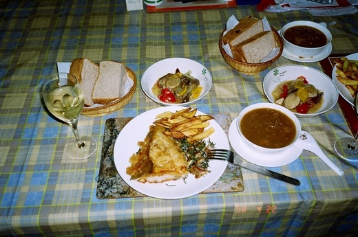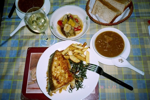 家 裡 請 客 , 氣 氛 輕 鬆 , 安 靜 不 吵 雜 , 邊 吃 邊 聊 時 間 不 拘 , 有 的 菜 可 先 準 備 , 像 洋 蔥 湯 , 烤 蔬 菜 都 在 前 一 天 做 好 , 到 時 加 熱 即 可 上 桌 . 讀 建 築 時 , 常 見 國 外 家 庭 廚 房 外 面 , 有 一 間 備 餐 室 ( pantry ) , 當 時 不 懂 其 作 用 . 現 在 臨 到 自 己 親 自 下 廚 , 才 知 道 這 間 備 餐 室 的 好 處 可 多 了. 中 式 聚 餐 是 熱 菜 一 起 上 桌 , 但 做 菜 一 定 有 先 後 , 先 做 好 的 菜 需 要 有 地 方 保 溫 , 加 熱 , 廚 房 空 間 有 限 , 當 場 做 好 的 菜 也 無 空 間 可 放 , 這 時 備 餐 室 就 可 發 揮其 功 能 . 西 式 聚 餐 是 一 道 一 道 的 上 菜 , 先 做 好 的 菜 仍 然 需 要 保 溫 , 放 在 備 餐 室 以 便 出 菜 , 而 且 備 餐 室 也 有 多 餘 的 空 間 , 放 碗 盤 刀 叉 等 餐 具 , 還 可 放 紅 酒 , 白 酒 的 低 溫 酒 櫃 . 炸 鱈 魚 和 薯 條 , 在 英 國 是 一 道 很 普 遍 的 常 民 小 吃 , 街 頭 小 館 都 可 吃 到 , 常 見 假 日 , 大 人 小 孩 手 拿 大 塊 的 炸 鱈 魚 吃 食 . 在 台 灣 , 西 餐 廳 不 易 見 到 此 菜 , 即 使 有 , 炸 魚 塊 也 小 的 可 憐 , 薯 條 又 細 又 軟 又 油 膩 , 難 怪 在 台 灣 吃 過 這 道 菜 的 人 不 多 . 我 的 這 道 菜 , 是 跟 傑 米 奧 利 佛 在 電 視 上 學 來 的 . 吸 引 我 注 意 的 是 其 特 別 的 作 法 , 炸 鱈 魚 的 麵 衣 用 麵 粉 和 玉 米 粉 混 合 , 加 入 啤 酒 , 邊 倒 邊 攪 拌 而 成 . 鱈 魚 放 進 濃 稠 適 度 的 麵 漿 中 , 沾 好 即 可 下 鍋 煎 炸 . 一 塊 又 大 又 厚 的 冰 島 鱈 魚 足 足 有 500 公 克 , 以 中 國 人 的 食 量 是 吃 不 下 的 , 所 以 我 對 半 切 成 兩 塊 , 每 人 半 塊 炸 好 也 夠 大 了. 還 有 很 特 別 的 是 , 搭 配 炸 鱈 魚 的 沾 料 是 迷 迭 香 和 大 蒜 , 大 蒜 整 粒 不 剝 皮 , 拍 扁 連 皮 放 進 油 鍋 煎 成 酥 黃 , 迷 迭 香 摘 取 葉 片 , 洗 淨 放 進 油 鍋 煎 成 酥 脆 , 兩 者 混 合 放 在 油 鍋 中 再 煎 炒 一 下 , 取 出 放 在 盤 中 , 灑 上 黑 胡 椒 鹽 , 拌 好 就 成 香 味 四 溢 的 炸 鱈 魚 沾 料 , 煎 好 的 迷 迭 香 大 蒜 放 在 盤 中 , 鱈 魚 塊 放 在 上 面 , 吃 時 酥 黃 軟 嫩 多 汁 的 鱈 魚 肉 塊 , 沾 上 迷 迭 香 大 蒜 , 這 種 味 道 好 吃 又 特 別 , 蒜 香 迷 迭 香 久 久 不 散 , 連 手 指 都 香 呢 ! 至 於 炸 薯 條 , 在 家 中 做 油 不 必 太 多 , 用 小 火 煎 即 可 . 馬 鈴 薯 要 買 大 顆 粒 的 , 斜 切 成 一 根 根 寬 厚 的 條 狀 , 煎 之 前 放 在 冷 水 中 , 避 免 氧 化 變 色 . 紐 約 名 廚 安 東 尼 波 登 在 書 中 , 就 曾 專 章 詳 細 解 説 好 吃 薯 條 的 正 確 作 法 , 外 脆 內 軟 , 不 能 太 油 , 上 色 要 均 勻 .