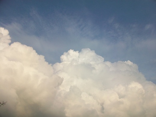 清 晨 時 分 , 曙 光 初 現 , 藍 色 天 空 呈 現 , 大 片 魚 鱗 狀 的 碎 片 雲 層 , 非 常 好 看 , 今 天 會 是 個 好 天 氣 . 不 多 時 , 大 朵 大 朵 , 像 棉 花 , 像 雪 堆 一 般 , 厚 實 的 白 色 雲 層 , 席 捲 而 來 , 湛 藍 的 天 空 , 頓 時 出 現 像 冰 淇 淋 , 像 棉 花 糖 , 不 斷 翻 捲 , 緩 慢 移 動 的 白 雲 , 變 化 成 各 種 形 狀 , 白 雲 蒼 狗 , 此 之 謂 也 . 世 事 滄 桑 , 良 有 以 也 ! 能 否 告 訴 我 , 永 恆 不 變 的 事 物 在 哪 裡 ? 青 春 抓 得 住 嗎 ? 容 顏 不 老 能 長 駐 嗎 ? 快 樂 時 光 能 留 得 住 嗎 ?