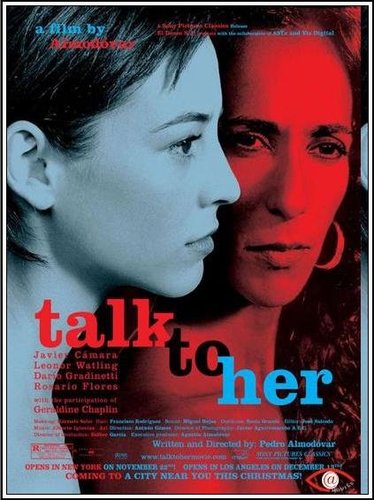 感 人 的 故 事 內 容 加 上 完 美 的 表 達 形 式 , 使 得 這 部 電 影 好 看 程 度 , 遠 超 過 我 的 文 字 敘 述 . 電 影 的 細 部 處 理 極 好 , 女 鬥 牛 士 在 上 場 前 , 穿 上 鬥 牛 服 裝 的 過 程 , 拍 得 仔 細 : 結 實 的 身 材 , 平 坦 的 小 腹 , 在 白 色 褲 襪 上 面 , 套 上 粉 紅 色 的 中 長 襪 , 然 後 由 助 理 幫 助 穿 上 , 黑 底 鏽 金 花 紋 的 緊 身 七 分 褲 , 上 身 白 襯 衫 打 著 紅 領 帶 , 穿 上 鏽 金 同 色 馬 甲 , 最 後 , 再 套 上 帶 有 披 肩 的 鏽 金 黑 底 長 袖 緊 身 外 套 , 整 個 穿 衣 過 程 , 近 距 離 拍 攝 , 細 部 清 楚 , 色 彩 華 麗 , 出 場 時 , 再 戴 上 黑 扁 帽 , 兩 手 拿 著 紅 色 鬥 牛 布 巾 , 整 體 氣 氛 營 造 得 美 極 了 . 植 物 人 美 少 女 洗 浴 穿 衣 過 程 , 裸 露 上 半 身 , 平 躺 在 病 床 , 洗 浴 後 擦 拭 乾 淨 , 覆 蓋 被 單 , 再 覆 上 病 服 . 抽 掉 被 單 , 由 兩 人 從 兩 邊 扣 上 病 服 , 再 蓋 上 被 單 , 動 作 熟 練 , 拍 攝 細 膩 , 完 美 無 暇 ! 女 鬥 牛 士 和 美 少 女 , 兩 人 坐 著 輪 椅 , 眼 戴 墨 鏡 , 在 陽 台 上 並 排 晒 太 陽 , 兩 個 植 物 人 相 對 無 語 , 真 是 經 典 畫 面 . 主 題 曲 < Cucurrucucu Poloma > , 由 巴 西 名 歌 手 < Caetano Veloso > 現 場 演 唱 , 高 亢 而 哀 怨 的 假 音 , 配 合 著 低 盪 迴 旋 的 大 提 琴 , 動 聽 無 比 , 電 影 配 樂 < Hable Con Ella > 十 分 出 色 , 主 旋 律 由 小 提 琴 搭 配 古 典 吉 他 , 不 斷 的 配 合 劇 情 , 重 複 出 現 , 更 為 加 深 電 影 的 哀 傷 和 沉 重 , 配 樂 結 尾 由 穆 斯 林 的 回 教 唱 腔 , 悠 揚 不 斷 拉 高 尾 音 , 真 是 撼 動 心 弦 ! 知 名 大 導 演 阿 莫 多 瓦 的 才 華 , 在 本 片 展 露 無 遺 .