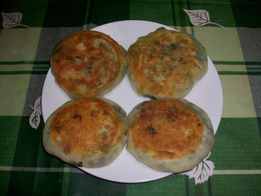現 在 要 吃 這 種 個 頭 不 大 , 圓 而 厚 的 蔥 油 餅 , 要 在 北 方 館 子 才 能 吃 得 到 , 而 且 還 不 是 經 常 會 有 , 為 了 想 吃 蔥 油 餅 , 只 好 自 己 做 囉 ! 從 小 看 母 親 做 , 根 本 不 用 學 , 也 不 用 看 食 譜 , 自 然 就 會 做 , 母 親 説 過 , 做 蔥 油 餅 要 用 燙 麵 , 燙 麵 者 , 用 滾 燙 的 水 和 麵 , 揉 好 的 麵 糰 , 還 是 溫 熱 的 , 每 次 做 蔥 油 餅 , 用 兩 杯 麵 粉 加 一 杯 滾 水 揉 麵 糰 , 揉 好 的 麵 糰 , 一 分 為 二 , 每 個 麵 糰 擀 一 張 麵 皮 , 這 張 麵 皮 要 擀 的 薄 而 大 , 上 面 淋 上 油 , 灑 上 鹽 , 蔥 花 , 從 後 往 前 捲 成 一 個 條 狀 , 用 刀 切 成 四 份 , 每 份 兩 端 用 手 揪 緊 , 再 稍 用 力 下 壓 , 呈 扁 狀 即 成 , 平 底 鍋 熱 油 , 少 油 小 火 , 慢 慢 煎 成 兩 面 酥 黃 , 幾 分 鐘 後 , 四 個 酥 黃 香 噴 的 蔥 油 餅 , 即 可 端 上 桌 .