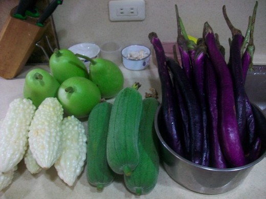 見到吾兄首張蔬菜團照,便是擄人目光.那味絲瓜蛤蜊我偏好炒上薑絲,青蔥大蒜我自幼只喜生食,不敢嚐熟透的.茄子的作法頗多,也是我愛吃的選項之一.至於苦瓜,對我簡直是致命的吸引力,無論是炒豆鼓魚乾或加入排骨熬湯,皆愛.尤其苦排湯,愛煞! 有回在中和緬甸街吃到的苦瓜湯裡頭有肉丸子有薑絲有青苦瓜,獨不見排骨,然居然非常鮮美異常,印像很深刻.