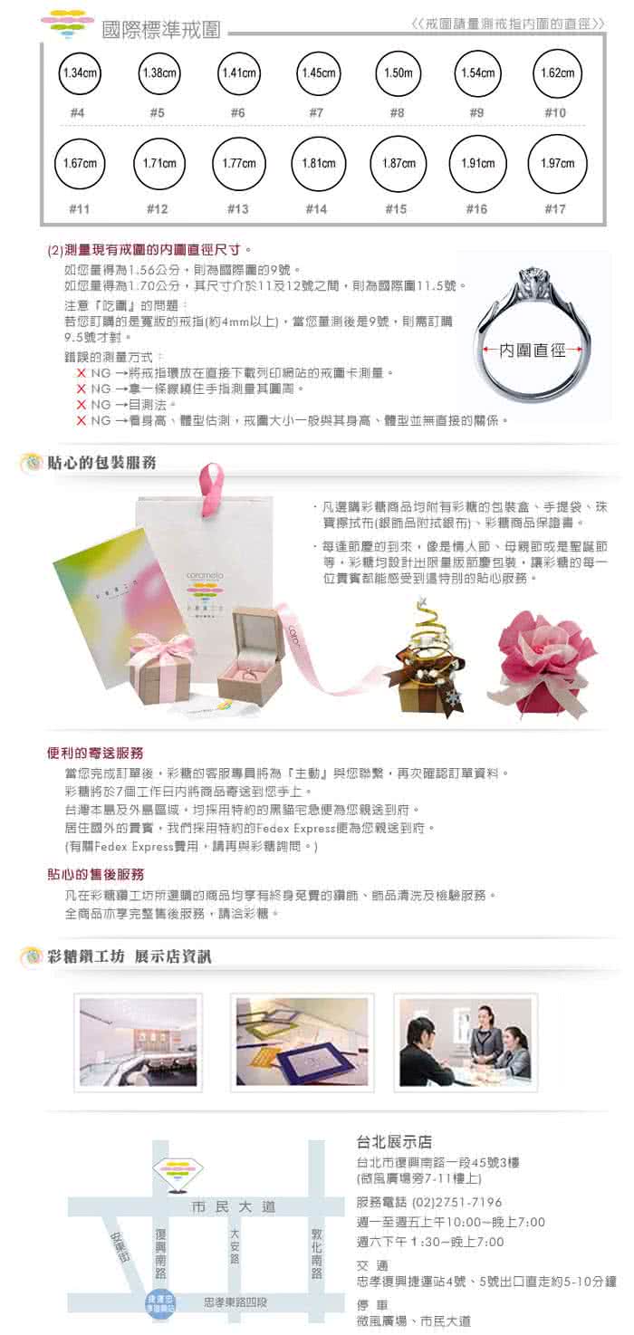 ◆戒圍尺寸(小於6號,含6號)及(超過14號,含14號),請先洽詢彩糖,謝謝!