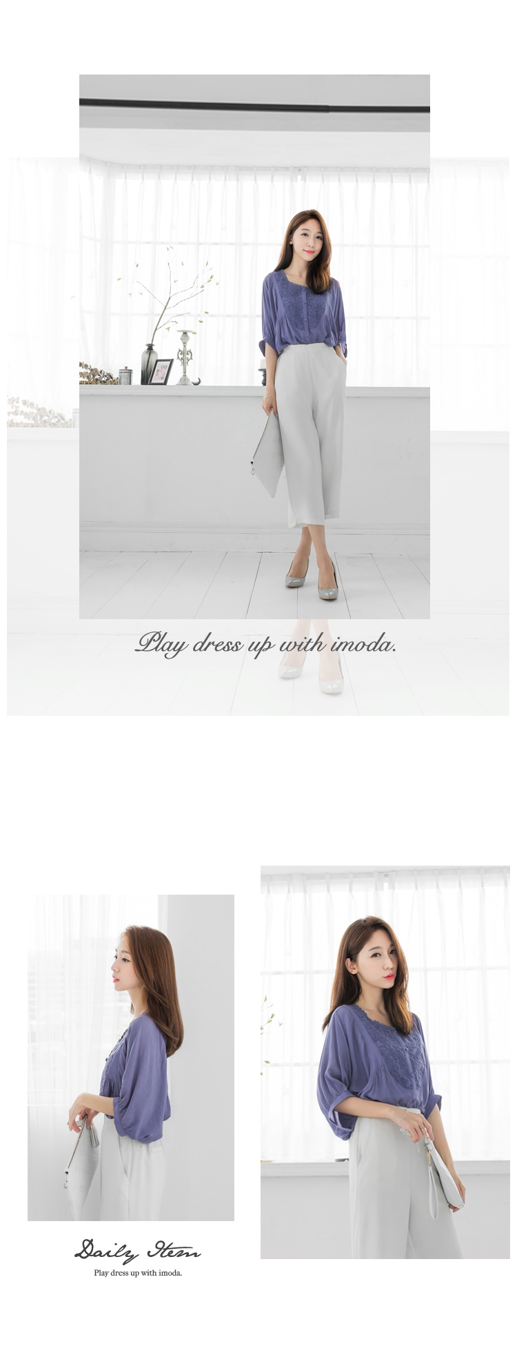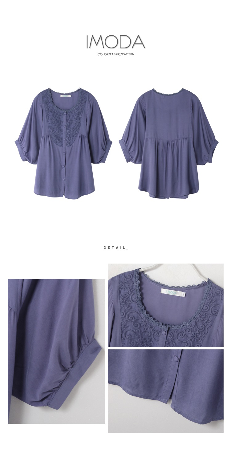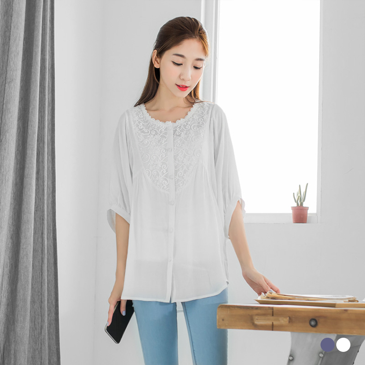 宮廷風的花紋刺繡與蕾絲領口搭配素色,散發低調貴氣