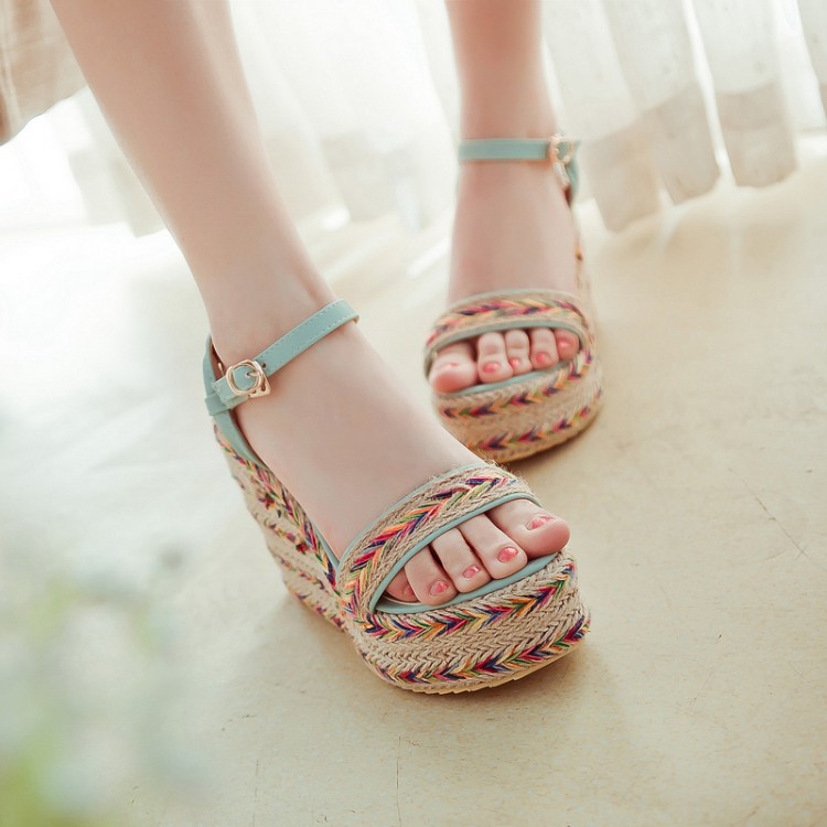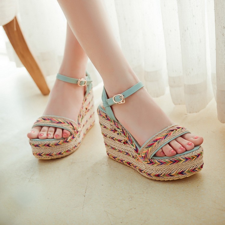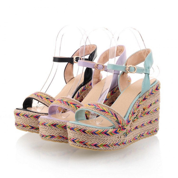 最新流行森林女孩亞麻草編鞋後絆帶坡跟女涼鞋 紫/藍/黑 32-43預購【no-44591359950】商品促銷中!