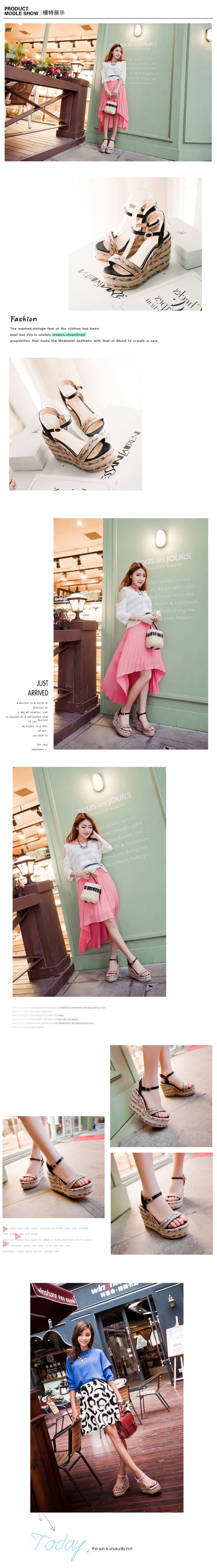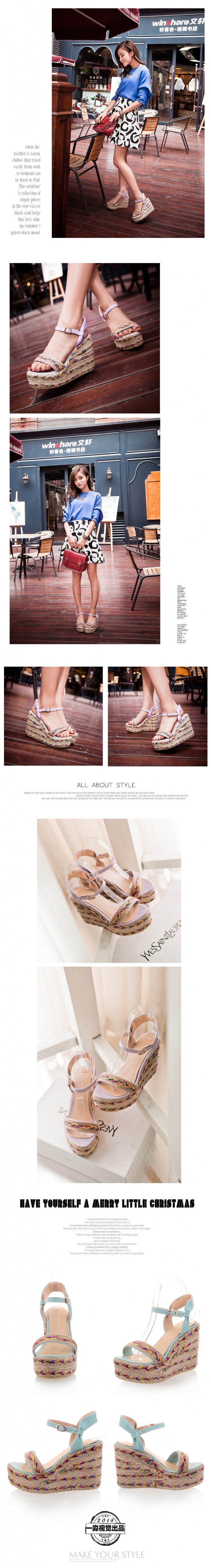 海薇說買東西前要多比較,叫我google一下森林女孩亞麻草編鞋後絆帶坡跟女涼鞋 紫/藍/黑 32-43預購【no-44591359950】。