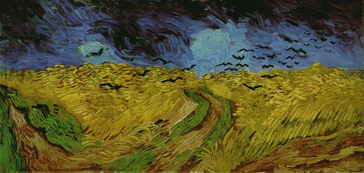 梵谷畫了「群鴉亂飛的麥田」後不久,就舉槍結束自己的生命。畫中充滿恐怖與不詳。他早已超越生死境界。亮麗的麥田隨風搖擺,描寫生命奔騰、狂歡。黯藍的天空和亂飛的烏鴉,描寫生命的終極,誰也逃不過人間的煉獄,但梵谷例外,他的畫作永留人間。