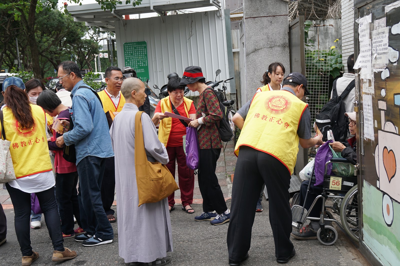 | 短短幾公尺的距離,佛號聲此起彼落。一句佛號,一個善意的笑容,種下學佛的菩提因種 |