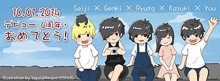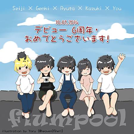 昨天是 flumpool 出道 6 週年紀念日。前幾天凌晨趕賀圖趕到全身痠痛、眼睛也痛,總算是畫完了。做了一般尺寸跟臉書封面尺寸。