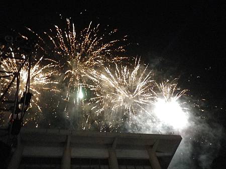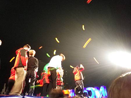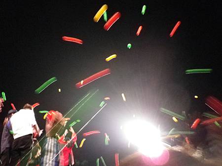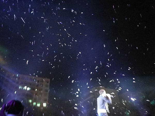 總算都沒白等!原本擔心的音響問題,也很神奇的都沒破音,音色也聽得算清楚,當然歸功於大家的用心,整個很感動,謝謝你們 ♥。可惜只唱三首歌就結束了,整個不過癮,倒數前大家有丟彩色塑膠球當做祈福,後來就跟著大家倒數,一起看煙火。