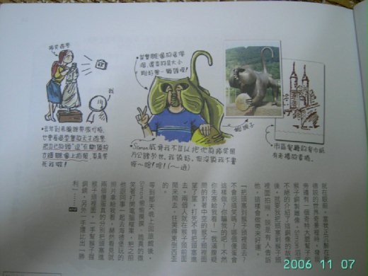 快速瀏覽了幾頁,發現一個好笑,且心有戚戚焉的喬段,有關拍照的姿勢習慣,每個人都有不同的想法及習慣,作者有次去希臘雅典旅行時,有個斷頭古蹟,曾看過耍寶的天才遊客,把自己的頭『逗』在斷頭的古蹟雕像上拍照,試著想像這種情形,真的是會讓人噗嗤的大笑起來。這種情形,似乎也曾發生在我身上哩。哈!難怪我會覺得心有戚戚焉呢!