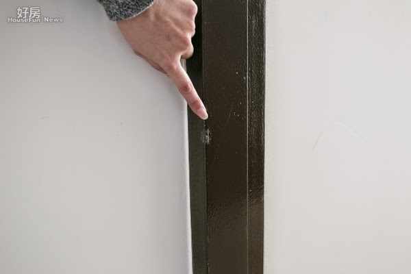 ↓門框有沒有歪,門是否平整,檢查的方式很簡單,先開關門幾次,看是否順暢,然後關起門來,用手指沿著周圍逐一壓按,若是有歪斜就會有回彈的現象。在門鎖部分,上鎖解鎖幾次,確認運作正常並且是密合不鬆動,開關沒有雜音產生。