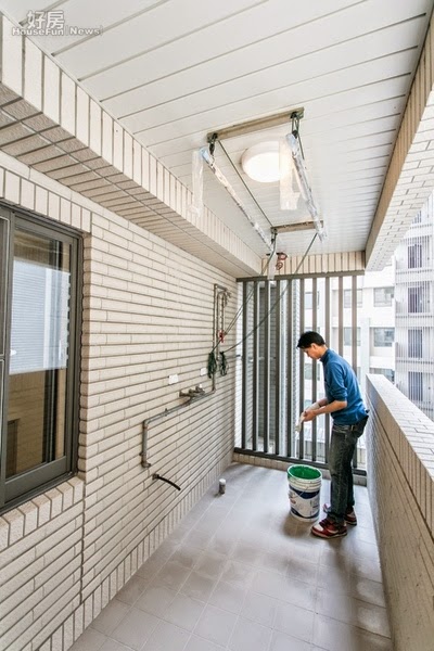↓後陽台大都用來當成洗衣、曬衣的地方。因此所有配屬設施都要完整並可順利使用,排水也要通暢。