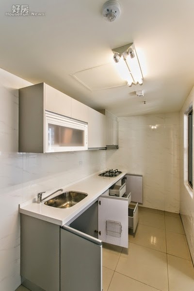 ↓大部分新屋建商都會贈送抽油煙機、瓦斯爐等基本廚具。雖然是送的,其實也等於自己花錢買,因此所有櫃子都要打開關閉看看是否順暢沒有歪斜,抽油煙機是否運作順暢,瓦斯爐點火是否有正常,所有燈光照明是否正常。