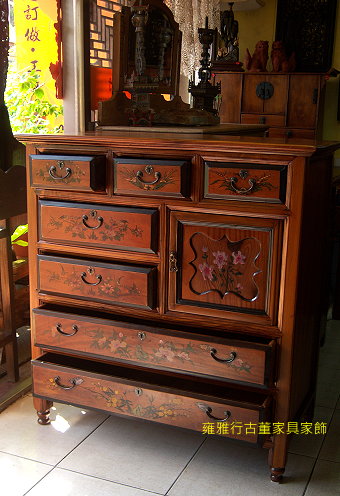 西藏櫃-九抽雪獅彩繪文件櫃【雍雅行古董家具家飾(Renaissance Artware)】