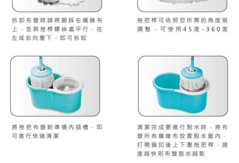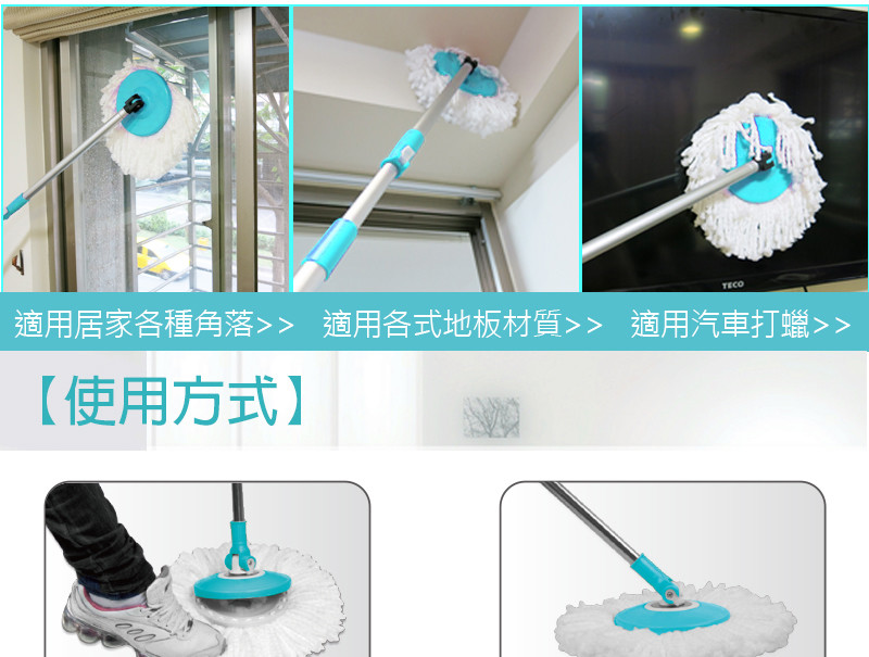 【360度旋轉拖把圓盤 → 輕鬆應付環境角落 免彎腰】