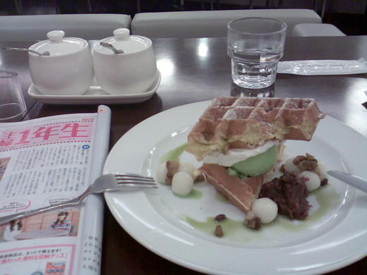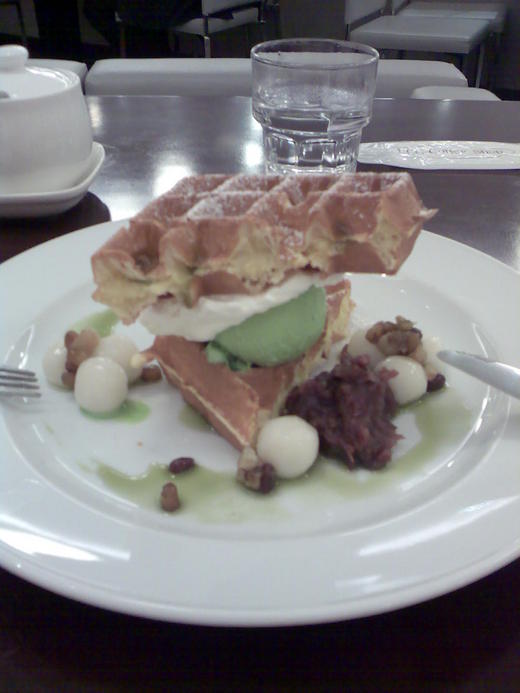抹茶紅豆鬆餅裡還有日式丸子(有點像小湯圓)