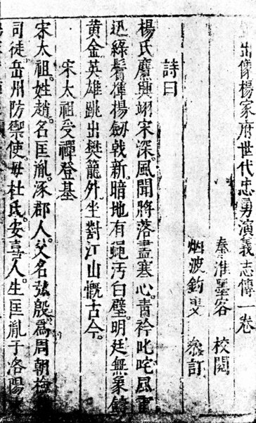 P016 24楊家府世代忠勇演義 圖為明本楊家府世代忠勇演義,俗稱楊家將,是民間 故事,敍述宋代楊業一門之忠勇事蹟。 楊業一名楊繼業,為宋代驍(讀如蕭)將,在與契丹人的爭戰中...