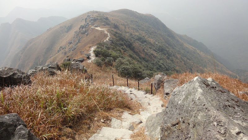 終於上了稜線再左轉一段就可以到頂,這段左轉稜線也是鳳凰徑最精采漂亮的一段,因為是稜脊,兩邊高聳突兀,所幸稜脊尚寬,不然還真嚇人。