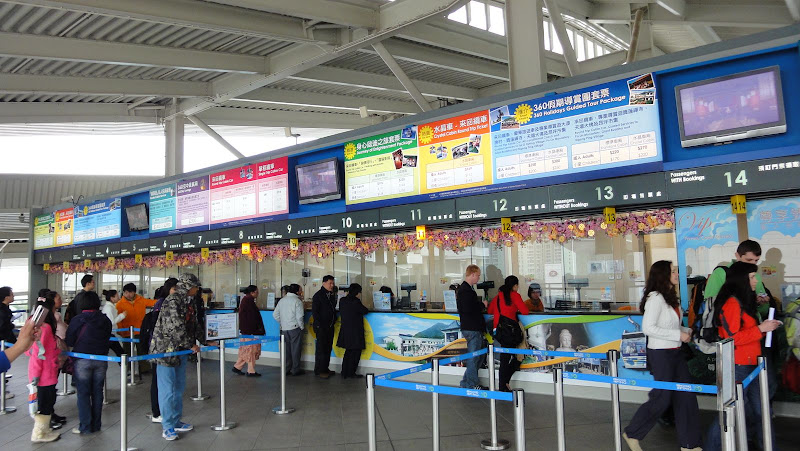 地鐵出了東涌,往昂坪纜車去。到了排隊處,有旅行社賣套票,早上十點才開始,氣溫有點冷,二十分後開始排著隊上去買票,售票口我抉擇了一下,因為我不懂什麼是水晶車而且比較貴,我只買了單程標準票80hk,還用了刷卡,售票員跟我說下山時必須自己搭公車。