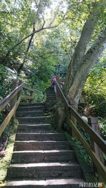 我們從慈惠堂上完廁所出來, 馬上接上步道, 這一路上都是階梯, 雖然不是很陡, 但郤有連綿不絕的階梯, 資料上寫700階, 海接覺得不止吧!