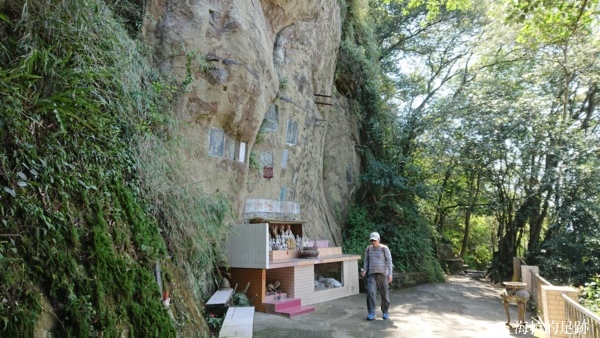 開始有下山的感覺了, 走了一會兒來到這處山壁及神龕處, 這裡就是妙高台了吧!