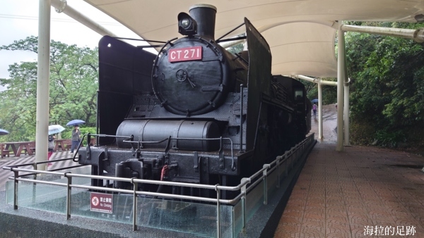 日本製的老火車頭, 1942年生產, 型號CT271. 已經退役的蒸汽火車頭, 刷成黑色外表, 具有工業風的特色.