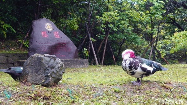 這裡的巨石上寫著櫻園, 櫻花季已經過了, 沒看到櫻花, 郤看到二隻巨大的鵝, 一黑一白, 後來又來了一隻, 這裡是他們的地盤, 所以一點兒也不怕生.