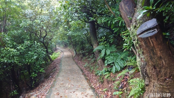 步道平緩好走, 二旁綠意盎然, 不一會兒就快登頂了, 前方有人, 應該也是同團的團友吧, 他們的腳程真快.