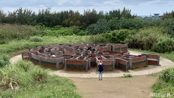 老梅迷宮是遊客必拍的熱門打卡景點, 迷宮由一面面紅色磚牆交替連結成彎曲又繁複的走道, 許多遊客在這裡拍照玩得不亦樂乎. 雖然整座迷宮不大, 但因坐落在大草皮上, 走到旁邊的山坡上可以俯視整個迷宮, 充滿神秘色彩的圖騰感, 彷彿是一座小型外星人的遺跡.