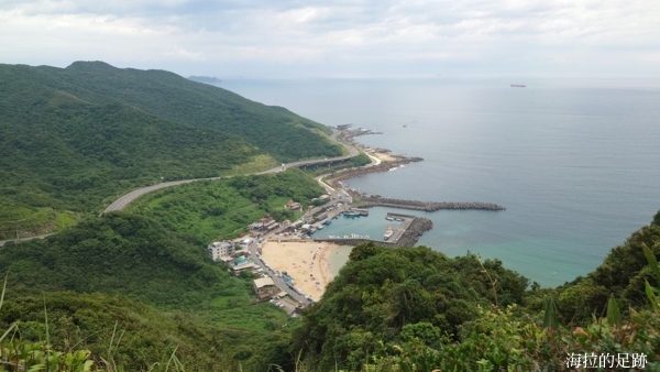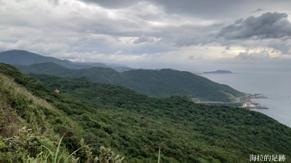 平緩好走的石板步道, 很快就到達最高點老鷹岩, 站在平臺上眺望左下方的大武崙澳底漁港及大武崙白沙灘, 右前方則基隆嶼及野柳海岬.