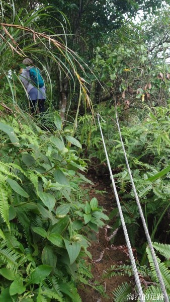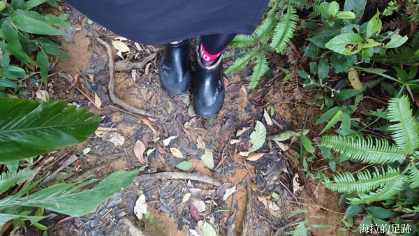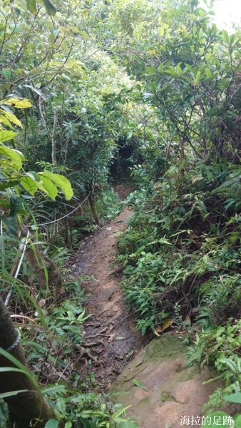 土徑很小, 只容一人穿越, 前幾天都有下雨, 因為泥土濕滑, 幸好今日穿了雨鞋. 山徑旁邊有拉繩, 上山還好, 下山時若沒有登山杖支撐, 還是拉一下繩子或旁邊的樹幹較保險.