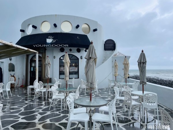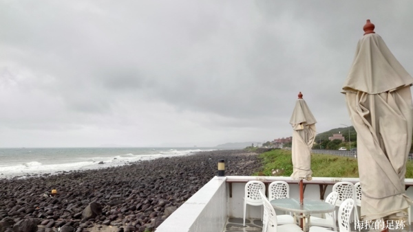 此刻, 雖然下著小雨, 我們依舊選擇坐在外面. 主要是裡面即將客滿, 疫情期間還是坐外面的空曠區較保險. 再加上坐外面有海景可看, 這樣的感覺還是很輕鬆愜意滴~~