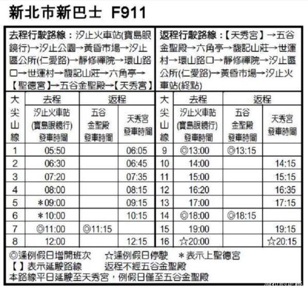 大眾運輸: 汐止火車站對面寶島眼鏡行前的站牌搭 F911 公車至天秀宮站下車. (p.s. 例假日僅至五谷金聖殿)