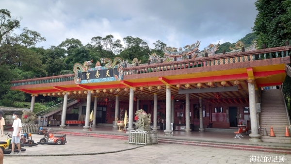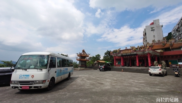 這天睡到自然醒, 跟山友大尾約好下午1點, 從台北搭區間車到汐止火車站. 過馬路到對面的寶島眼鏡行前的站牌搭2點的「F911公車」至五谷金聖殿站下車. 此時, 艷陽高照, 熱的海拉在等公車時, 一度想要去買杯手搖飲來消暑.
