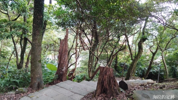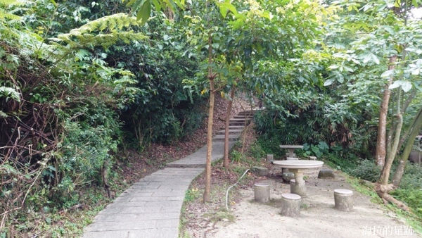 一開始是平緩的階梯, 沒什麼難度. 步道旁設有石桌石椅可供休息.