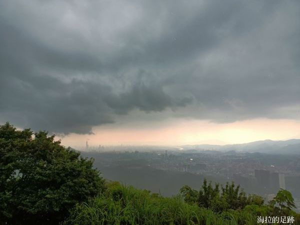 感覺走了很久的階梯, 實際上還真的半小時左右就到三角點的涼亭. 只是這天氣也太驟變了. 就在我們快到涼亭時, 下起了午後雷陣雨.