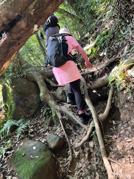 走完產業道路轉入步道後便是苦難的陡上土路, 感覺跟高島縱走一樣. 我們八人中有四人走過高島縱走, 除了海拉外的其他三人的心中都對高島縱走有陰影.